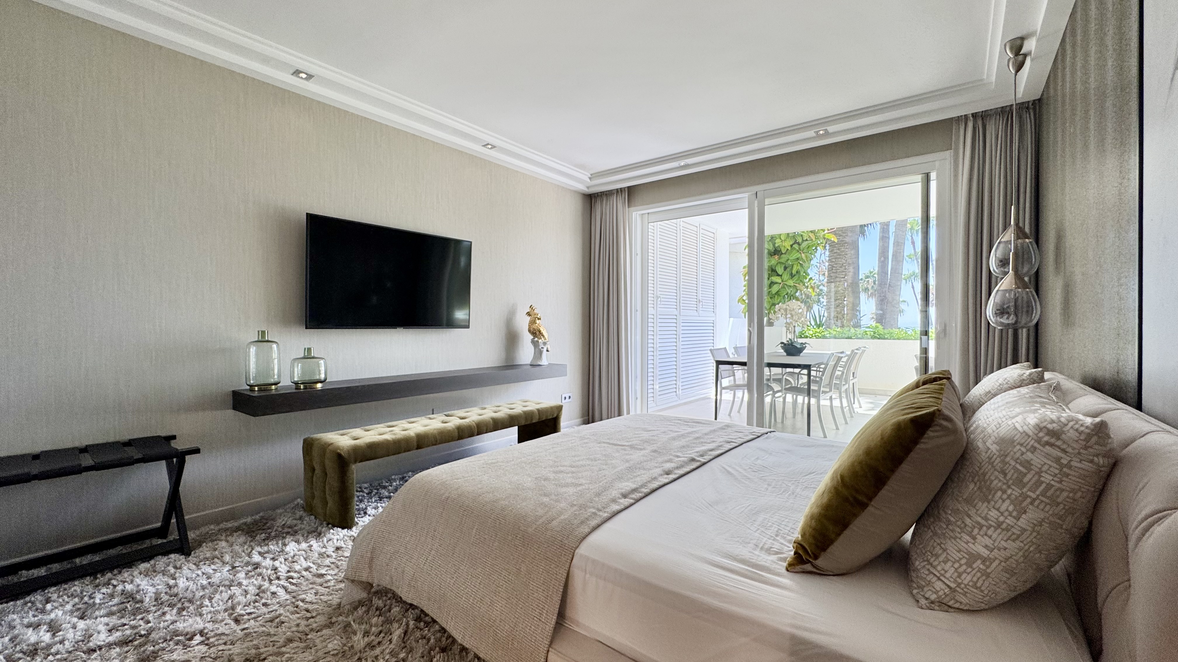 A beautifully renovated ground floor apartment featuring 3 bedrooms and 3 en-suite bathrooms, located within the Jardín Japones of the iconic Puente Romano Beach Resort on Marbella’s Golden Mile. This property offers a unique combination of stylish design, premium materials, and a prime beachfront location.